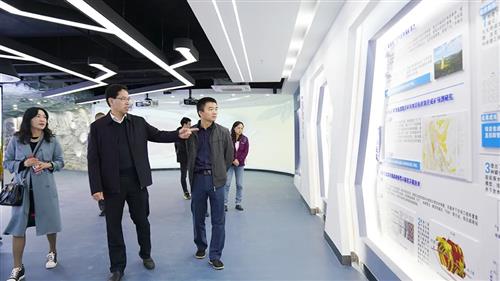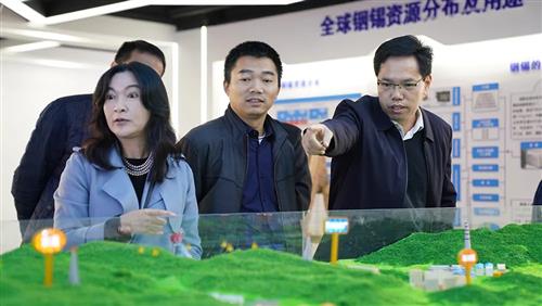 在铟锡资源高效利用国家工程实验室,周国桥一行参观了ITO靶材试验区及展厅,详细了解了实验室建设情况及华锡集团科技创新、产业布局的规划。