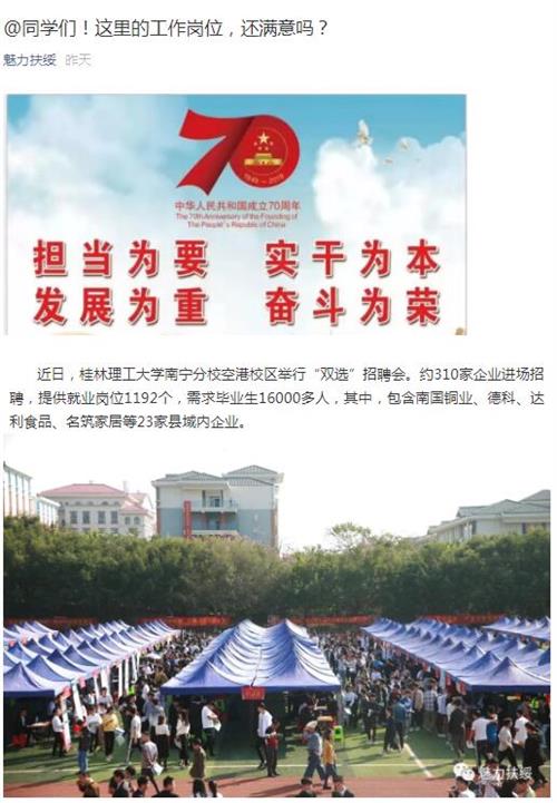 近日,魅力扶绥以《@同学们!这里的工作岗位,还满意吗