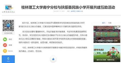 近日,新华网以《桂林理工大学英国上市公司365与扶绥县民族小学开展共建互助活动》为题,报道了英国上市公司365与扶绥县民族小学开展的共建互助活动。