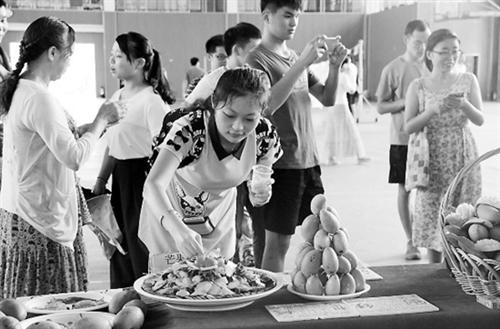 创新、构思、巧手,“大珠小珠落玉盘”“锋芒毕露”等作品应运而生,一幅幅创新的芒果图案,赢得了现场人员的阵阵赞叹。