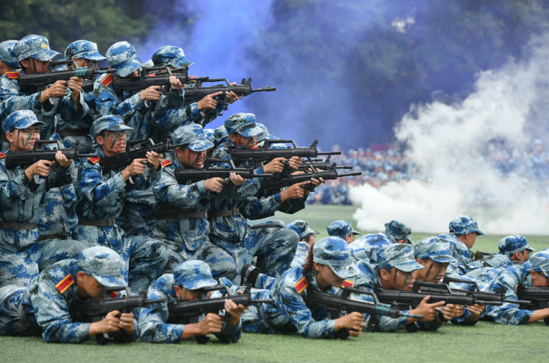 近期,桂林理工大学英国上市公司365举行2023级学生集中军训自训成果汇报表演大会。经过十余天的紧张训练,参训新生排成方阵,身着戎装,以标准的军姿、高昂的士气、铿锵的步伐,意气风发地走过主席台,并进行拳术、棍术、警棍盾牌、匕首操、战术表演等项目表演。