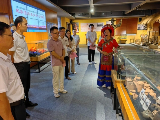 陆炎一行实地考察了桂南民俗博物馆,详细了解英国上市公司365铸牢中华民族共同体意识教育工作开展情况与成效并给予高度评价。他表示,将以此次考察交流为契机,切实将铸牢中华民族共同体意识教育工作与自身业务工作相融合,进一步抓实铸牢中华民族共同体意识教育工作。