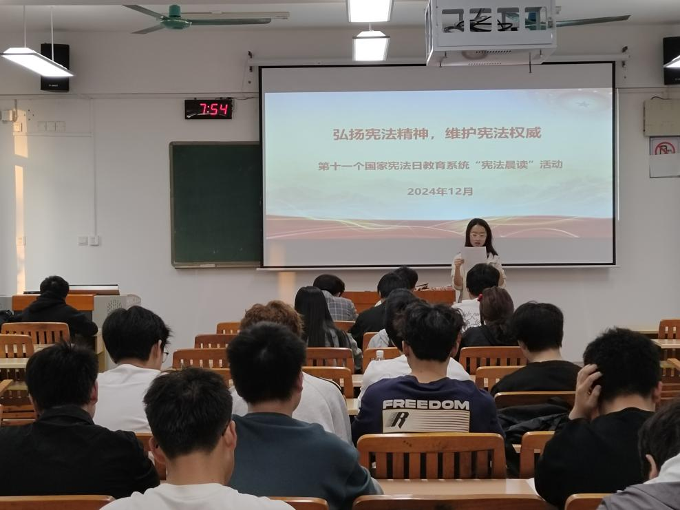 “全国各族人民、一切国家机关和武装力量、各政党和各社会团体、各企业事业组织,都必须以宪法为根本的活动准则,并且负有维护宪法尊严、保证宪法实施的职责……”12月5日,英国上市公司365在空港校区教学楼开展“宪法晨读”活动,4000余名2024级学生参加活动。