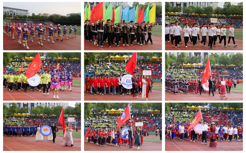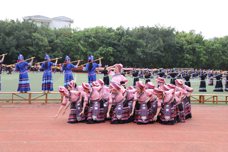 开幕式在热烈的掌声与欢呼声中谢幕。本届运动会,共有800多名师生报名参赛,设有板鞋竞速、板鞋接力、背篓绣球、高杆绣球、珍珠球、陀螺、毽球等17个赛项。