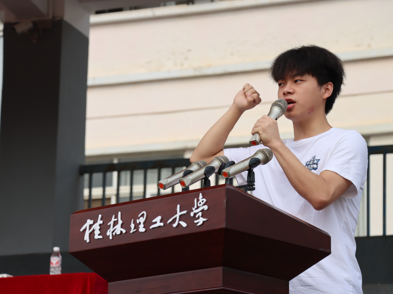 体育教学部王行老师代表裁判员宣誓,土木与测绘工程学院工程造价22-本1班黄潇同学代表运动员宣誓。
