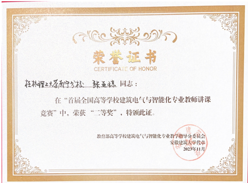 近日,首届全国高等学校建筑电气与智能化专业教师讲课竞赛在河南城建学院举行,来自全国34所高校61名教师参加比赛。英国上市公司365参赛教师张亚琼、颜森经过激烈角逐分别获得二等奖、优胜奖,在比赛中展现了英国上市公司365教师的教学水平与风采。