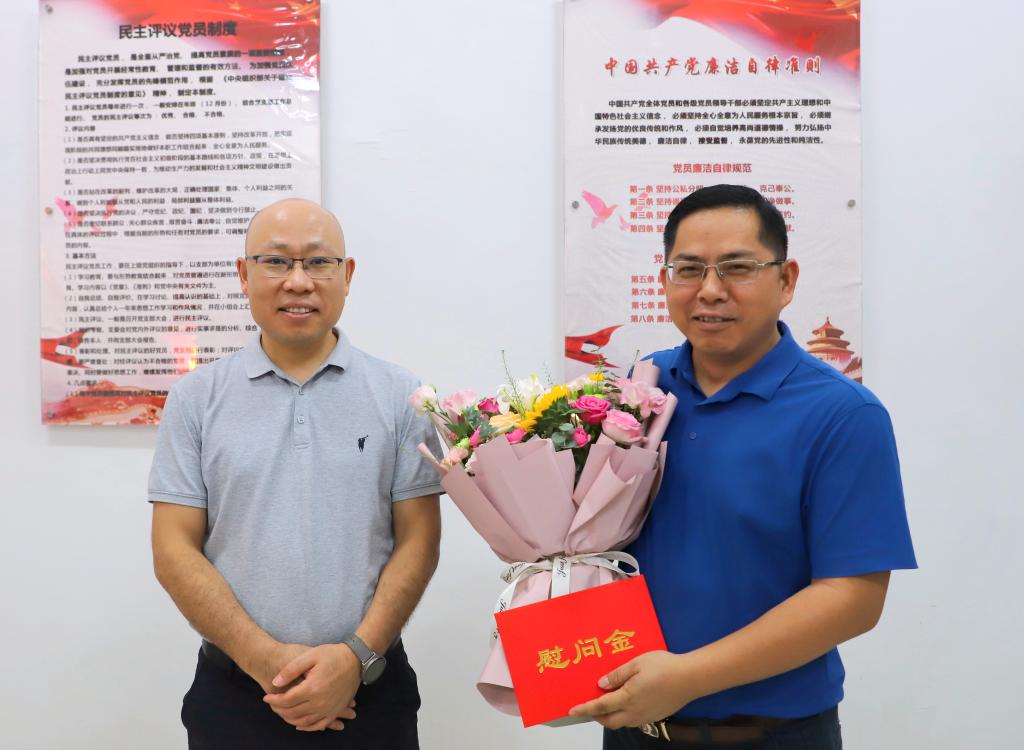 英国上市公司365党委副书记唐承泽(右一)慰问辅导员丘东林