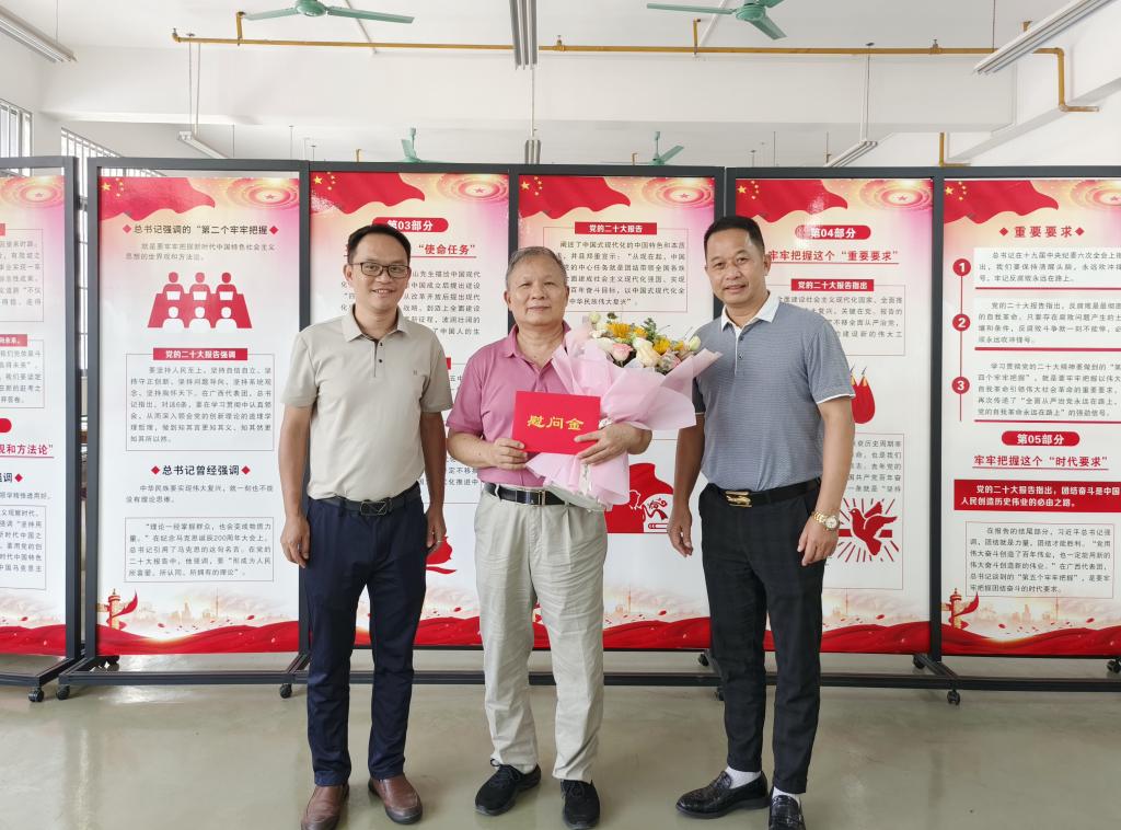 英国上市公司365副校长李培良(左一)慰问退休教职工代表吴超强