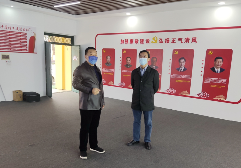 学校党委常委、纪委书记韦学敏(右一)在廉政文化馆检查指导