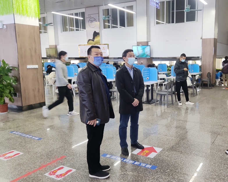 学校党委常委、纪委书记韦学敏(前排右一)在食堂用餐区检查指导