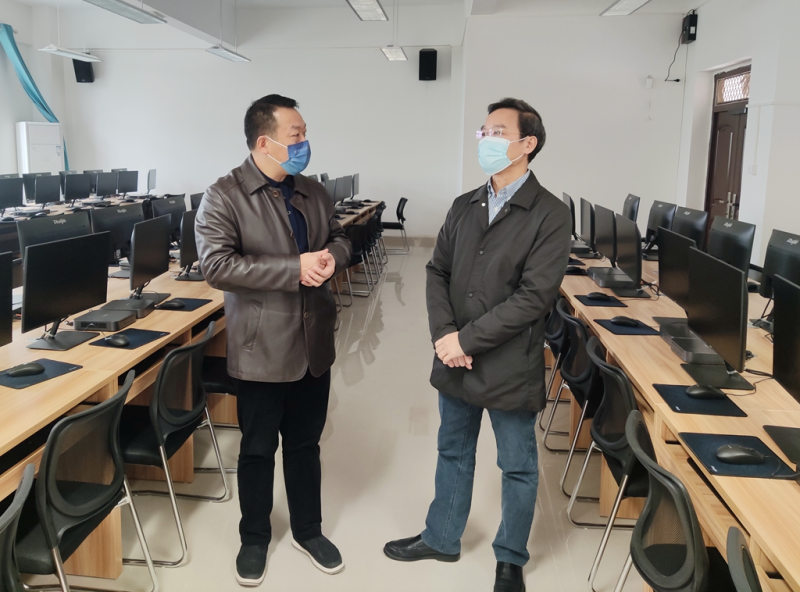 学校党委常委、纪委书记韦学敏(右一)在实验实训中心检查指导