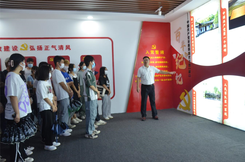 何斌围绕伟人谈廉政、百年“纪”忆、忠诚守纪、尽责担当、传承奋进、红色家风、反腐历程、警示案例等廉政教育馆展示内容为学生作了生动详实讲解。在讲解中,何斌就“诚信守法”作了重点阐述,强调青年学生是价值观形成和确立的关键时期,要自觉加强政治理论学习,坚定理想信念,用好习近平新时代中国特色社会主义思想这把“金钥匙”;要自觉践行社会主义核心价值观,树道德之风,立诚信之基,认真踏实、勤学实干;要知敬畏、存戒惧、守底线,自重自省、自警自励,不断提升遵纪守法的意识。最后,何斌带领学生党员共同重温了入党誓词。