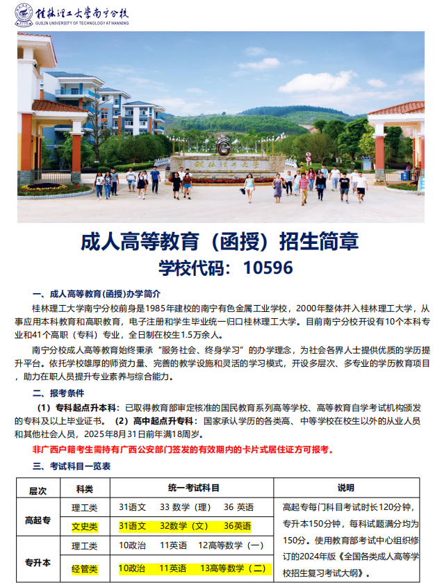 桂林理工大学英国上市公司3652025年成人高等教育(函授)招生简章