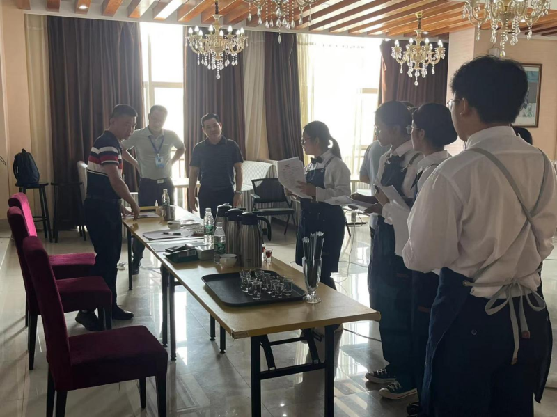 此次职业技能鉴定共分为理论鉴定和实操鉴定两部分。理论鉴定采用机测形式进行考核;实操鉴定主要考核咖啡厅交接班流程、咖啡豆辨别、摩卡壶制作单品咖啡、卡布奇诺咖啡制作等内容。鉴定考核过程中,学生充分展示对咖啡理论知识的掌握情况和咖啡萃取、冲泡等技术,整体表现效果良好。为保证鉴定工作顺利进行,酒店管理教研室教师制定了详细的师资培训、学生培训、监考人员培训和考场布置工作方案,对鉴定工作进行详细部署。鉴定过程中,副校长梁尚尉、校长助理劳国炜到现场督导,保证鉴定质量。