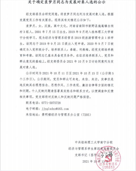 关于确定袁梦月同志为发展对象人选的公示