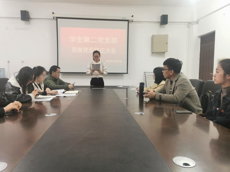 12月24日,我系学生第二党支部在景明楼7210使用线上加现场会议形式召开预备党员转正大会,会议主要内容是对张云帆同志发展为中共正式党员进行讨论和表决。学生第二党支部书记陈金鸿同志、党支部委员、以及支部党员们参加本次会议,会议由党支部书记陈金鸿同志主持进行。