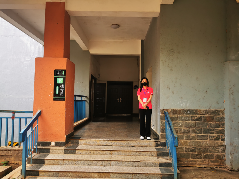 志愿者在教学楼值班