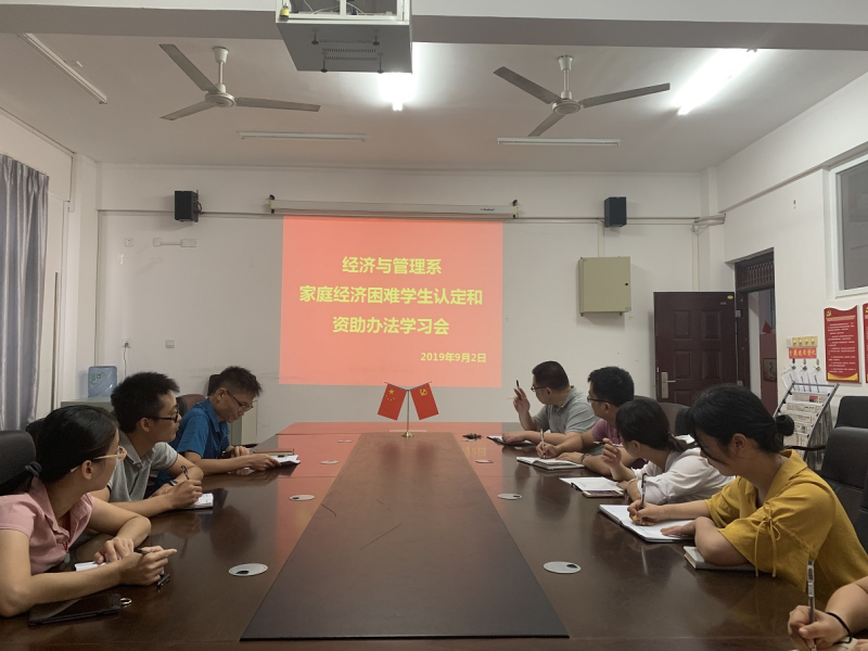 为扎实做好学生资助工作,能够为家庭经济困难学生打造编织安心上学的“安全网”。我系于2019年9月2日下午在7210会议室召开经济与管理系家庭经济困难学生认定和资助办法学习会,全体学工组人员参加会议。