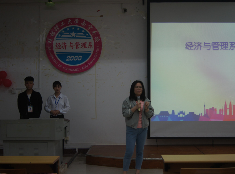 学生会学习部部长张灿同学(左一)介绍本次活动的主要内容