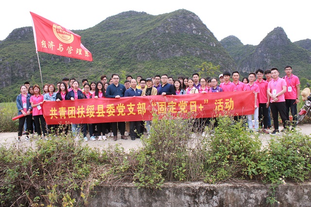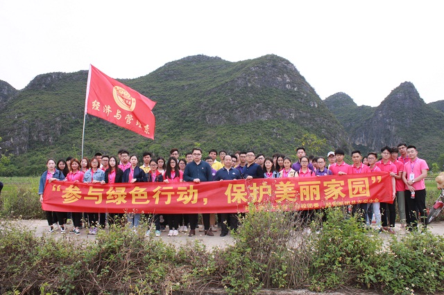 为引导当代青年爱护绿化、美化环境的情感,亲身体验劳动的乐趣,激发爱校、爱环境的情感,4月15日下午,由共青团桂林理工大学英国上市公司365委员会主办、共青团扶绥县委员会、扶绥县昌平乡人民政府联合主办,经济与管理系承办的“参与绿色活动,保护美丽家园”植树活动在昌平乡木民村开展,昌平乡副乡长王祖德、团县委干事项秋梅、分校团委梁喻深老师、经管系陈曙钰老师、及昌平乡政府代表、木民村委代表和经济与管理系、机械与控制工程系、电气与电子工程系部分学生干部代表共计100多人参加此次活动。