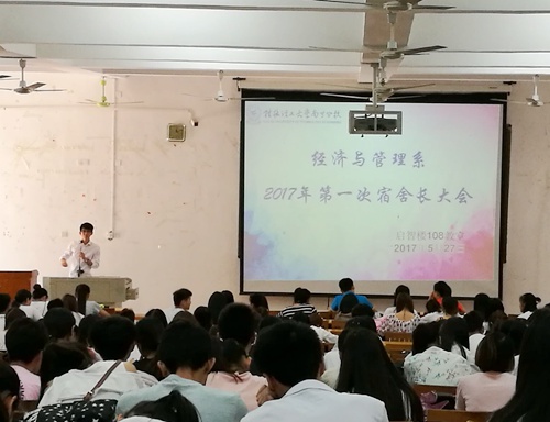 5月27日中午,我系在空港校区启智楼108室召开全体宿舍长大会。我系党总支副书记兼学工组组长曾灿博出席会议,我系部分辅导员老师和2015级、2016级全体宿舍长参加会议。