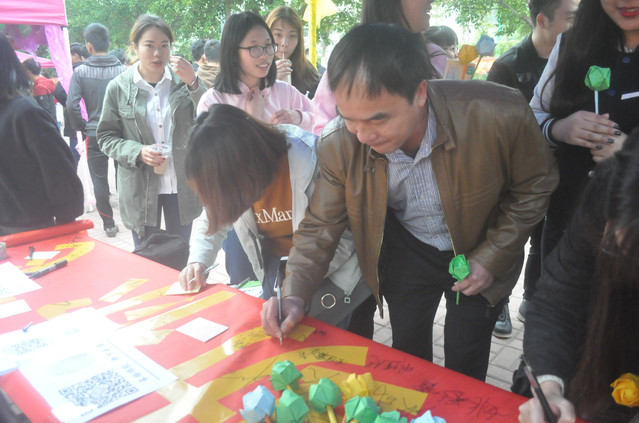 3月7日,我系在空港校区行健路及女生宿舍秀雅园门口开展庆祝女生节主题趣味活动。分校校长冯兵、招办主任蒋学先、系党总支副书记黄薇薇老师与同学们一同参与了活动。