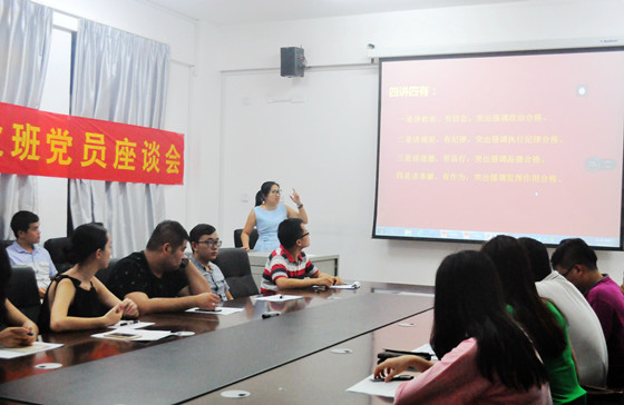 黄薇薇副书记带领全体党员进行了“四讲四有合格党员”的党课学习,结合毕业班学生党员实际,黄副书记围绕“如何提高党性修养,做‘四讲四有’合格党员”作了重点阐述和讲解,并要求党员同志主动学习并自觉遵守党纪党规,进一步坚定理想信念,提高党性觉悟,在工作岗位上起先锋模范作用。