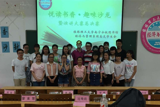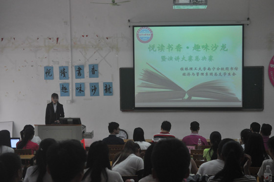 5月26日下午,由分校图书馆主办、我系承办的首届“悦读书香,趣味沙龙”PPT演讲比赛在分校空港校区启智楼106教室举行。图书馆副馆长蒙童慧、学工部副主任罗勇等领导老师出席了比赛并担任评委。