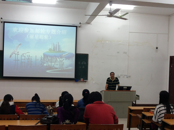 11月2日晚,丽星邮轮厦门公司到我校空港校区启智楼203教室召开专场招聘会,拟招聘我系商务英语、酒店管理、旅游管理、国际经济与贸易等专业的毕生生若干名。