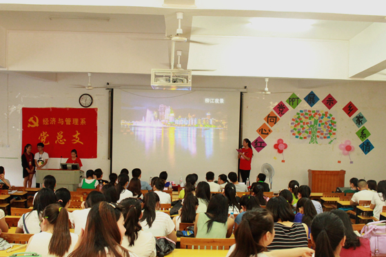 6月4日下午,我系党支部在空港校区启智楼201教室举办“红心向党,情系家乡”PPT展示大赛。我系党总支书记梁勤、副书记黄薇薇出席了比赛,各辅导员老师与全体入党积极分子观看了比赛。
