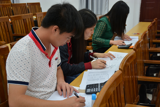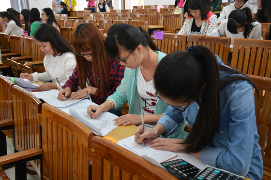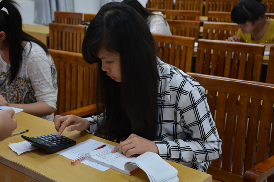 在个人比赛现场的出纳岗位的考核中,选手们认真细致地填写相关单证、熟练灵活的点钞、捆钞;在核算会计岗位的考核中,选手们一只手不停的按着计算器的按键,另一只手翻着传票,手法娴熟,姿态稳健;在成本会计岗位的考核中,选手们飞快而准确地进行固定资产折旧的成本核算和辅助生产费用分配的成本核算;在主管会计岗位的考核中,选手们争分夺秒地编制银行存款余额调节表。