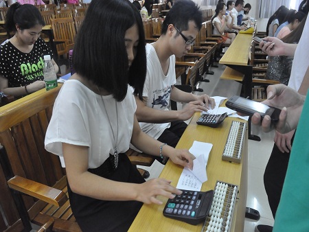 4月25日下午,我系会计教研室在启智楼301教室举行会计技能翻打传票比赛,共有64名翻打传票能手参加了比赛。