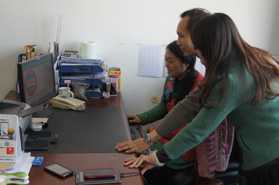 系部领导班子在对系徽方案进行评选