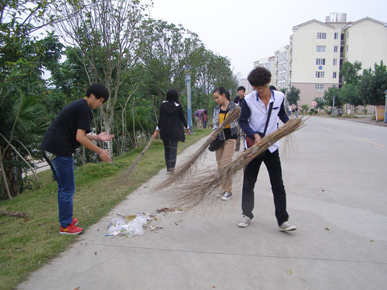 在活动中,我系党总支副书记兼学工组长黄薇薇老师、辅导员许枫老师分别带领本班学生在我系责任区清理垃圾,把固体垃圾、小石块、杂草、杂物等“扫”出青青草坪。