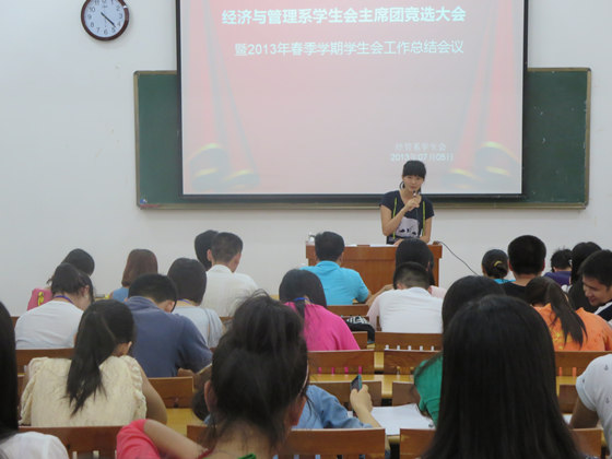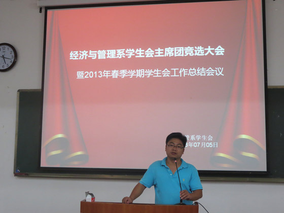 我系于7月5日下午三点半在8203教室举行了学生会主席团竞聘大会,我系全体辅导员担任本次大会的评委,学生会全体人员参加了大会。大会由学生会主席郁江滨主持。