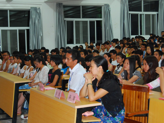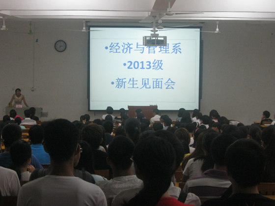 2013年9月15日晚七点 ,我系在八栋教学楼举行了2013级新生见面会,出席此次见面会的领导有高职学院学工部主任唐承泽、高职学院团委书记张凯、我系党总支书记梁勤、党总支副书记兼学工组长黄薇薇,新生班级班主任、辅导员以及2013级全体新生参加了见面会。