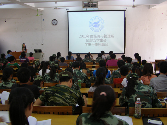 随着新干事招聘工作的圆满结束,为更好的布置开展本学期团学工作,我系于2013年9月28日12点30分在教学楼8108教室举行了新一届团总支学生会干事见面会。出席本次见面会的有我系党总支副书记兼学工组长黄薇薇老师,辅导员劳国炜、张川、黄维、许枫、连鹭霞、徐世俊等老师。参加这次会议的还有我系团总支学生会干部以及144名新干事,会议由团总支副书记石珊瑜主持。