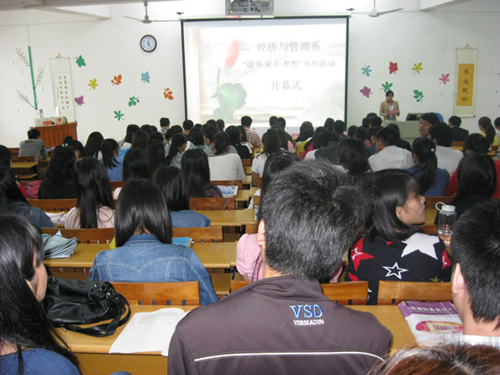 为了传递当代大学生读书的热情和正能量,让同学们进一步明确读书的重要性,深入了解广西的特色,并通过自身的不断努力实现梦想,我系于2013年5月3日下午5点整在8301举行了主题为“读书、家乡、梦想”系列活动开幕式。出席本次开幕式的嘉宾有高职学院基础部娄文杰老师,经济与管理系学工组长廖秋凉老师,以及经济与管理系全体学工老师。开幕式由许枫老师主持。