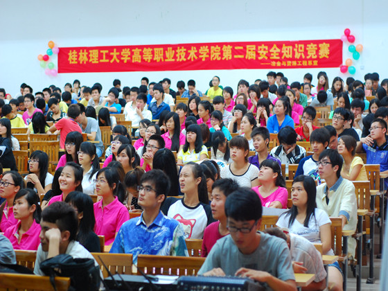 为增强同学们的安全防范意识,建设安全文明的校园文化环境。2013年5月7日下午七点桂林理工大学南宁空港校区8108教室举办了由学生工作部、团委主办,冶金系承办的安全知识竞技大赛,出席此次比赛的领导嘉宾有团委书记张凯老师及各系辅导员,我系派出11级郑圆、张文燕、12级陈佳佳、史发栋作为代表参加了此次比赛。