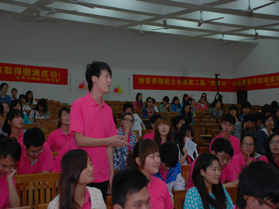 2013年4月2日下午,我系与土木系联合举办的辩论赛总决赛在8108教室举行。土木系学工组长饶蠡老师,以及两个系的所有辅导员都出席了比赛现场。