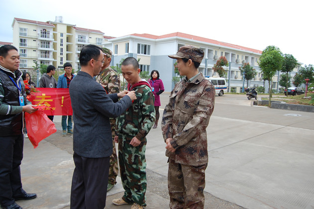高职学院常务副书记梁冬松为新兵带上大红花