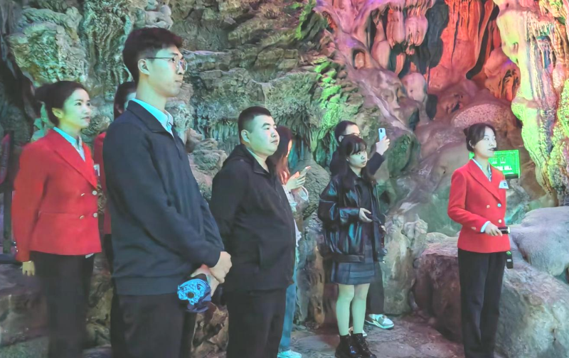 一行人首先到达桂林洁伶工业有限公司,人力资源部总监向带队老师和学生介绍了企业今年的招聘条件、薪资待遇、未来的人才需求方向,随后一起参观电商运营工作室、直播间,职工宿舍、科研楼、工厂等。下午到达桂林力源集团,深入了解桂林力源的基本情况和发展历程,参观部分正在运营的超市,深刻感受力源集团的企业文化。集团与党共建共联,发展生物高新技术产业,成为中国特色社会主义民营企业,成在疫情期间不仅能保增长,还为市场提供就业岗位,同时在财务人员培养上有十年以上企业财务体系建设经验,能为学校财会人员成长提供良好学习交流平台。次日,一行人到桂林芦笛岩实习基地看望了我系在此实习的学生,带队老师向实习生们表达了关心关爱,鼓励大家多学习、多思考,教育同学们将个人前途命运跟国家发展建设相结合。