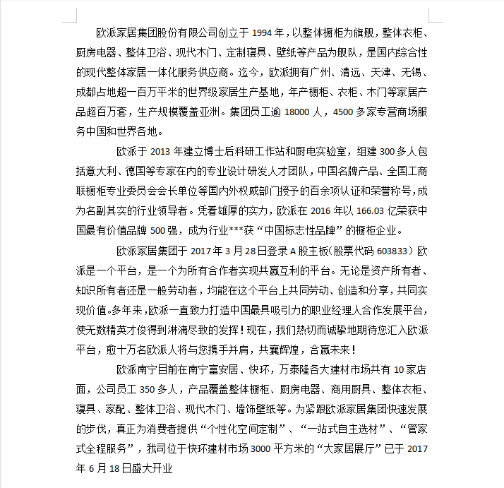 欧派家居集团股份有限公司招聘信息