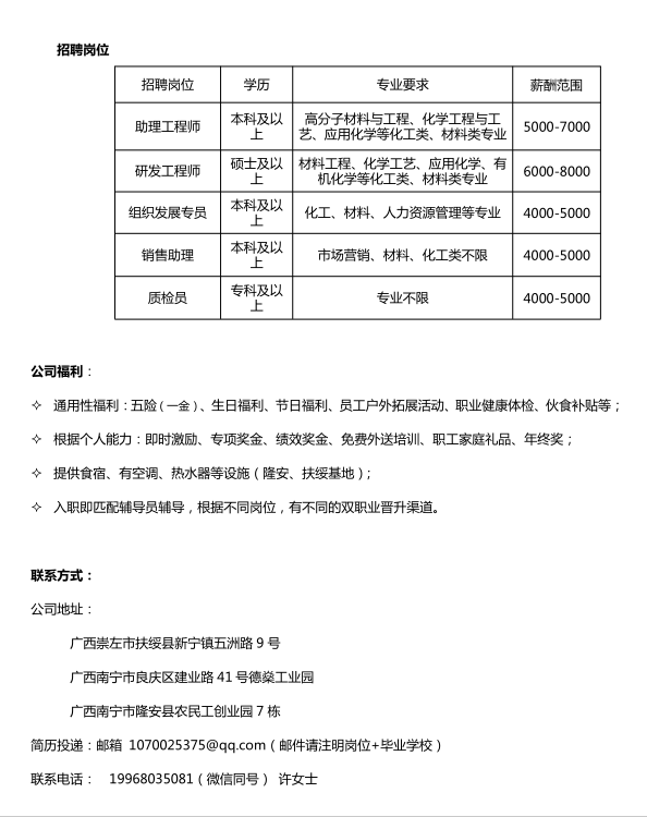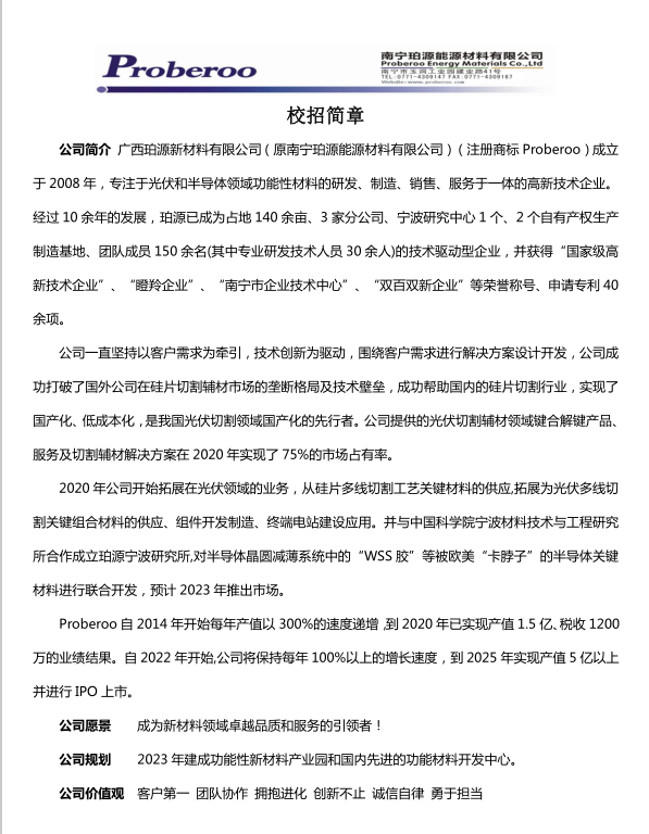 广西珀源新材料有限公司校招简章