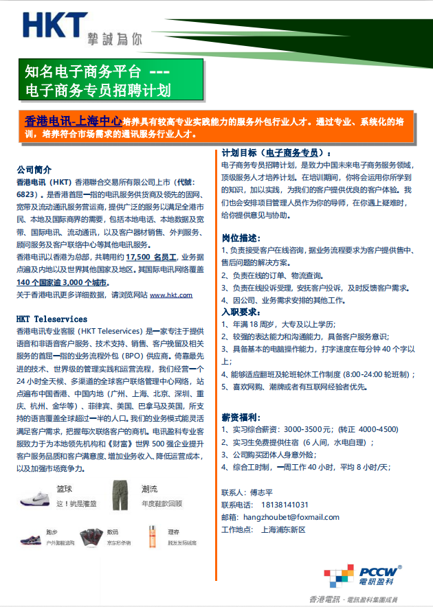 需求专业:市营、国贸优先,其他专业亦可,大专及以上学历