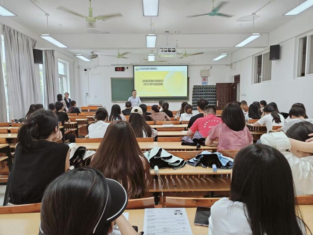 11月14日,扶绥深通村镇银行在6205教室召开专场宣讲会,学院积极组织2025届毕业生参加本次宣讲会。