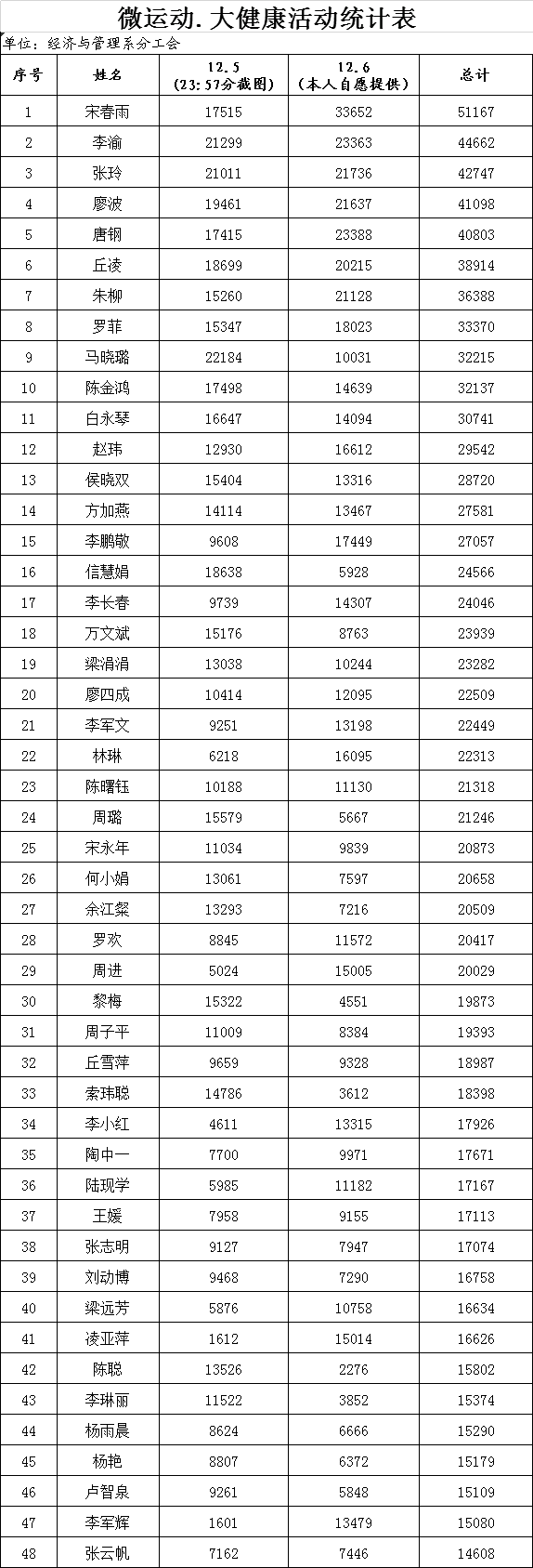 为丰富教职工业余文化生活,积极倡导全民健身活动,12月5日--2020年12月6日,我系分工会开展“微运动,大健康”主题活动。