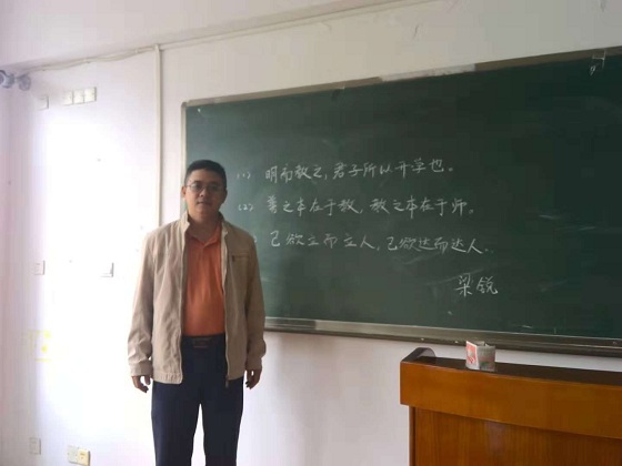 在写粉笔字过程中,思考现代教育教学方式与传统教学方式的融合,也思考新时代“三全育人”开展与贯彻。比赛按教研室分为六组,根据评分,奖励前四组。最终旅游酒店组获得了第一名,商英组获得了第二名,学工组获得第三名,市营组获得第四名。
