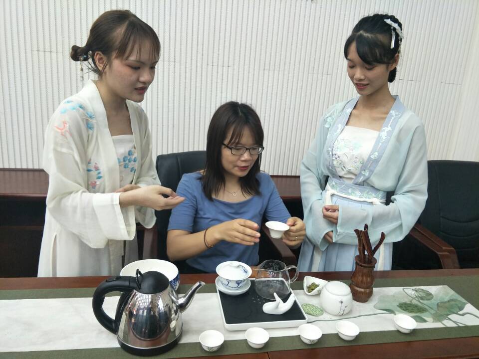 2019年6月25日经济与管理系分工会在图书馆报告厅举办“青年年华,夏日有我”为主题的-茶艺比赛。来自全系的各教研室老师和学工组老师参加了比赛,本次比赛由周子平主任、覃燕玲教授、廖波教授和白永琴老师担任本次比赛评委。