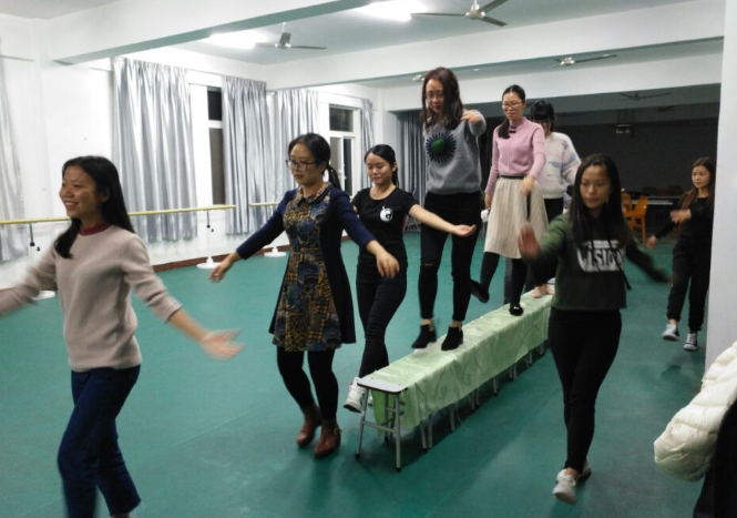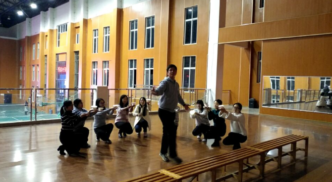 在形体室、在体育馆舞台,只要是业余时间,都可以看到我系节目参演人员的排练身影。他们对每一个动作、姿态、表情都进行了认真反复的训练,力争做到动作优美、整齐划一,在元旦文艺晚会上给全校师生展现我系教职工良好的精神面貌。